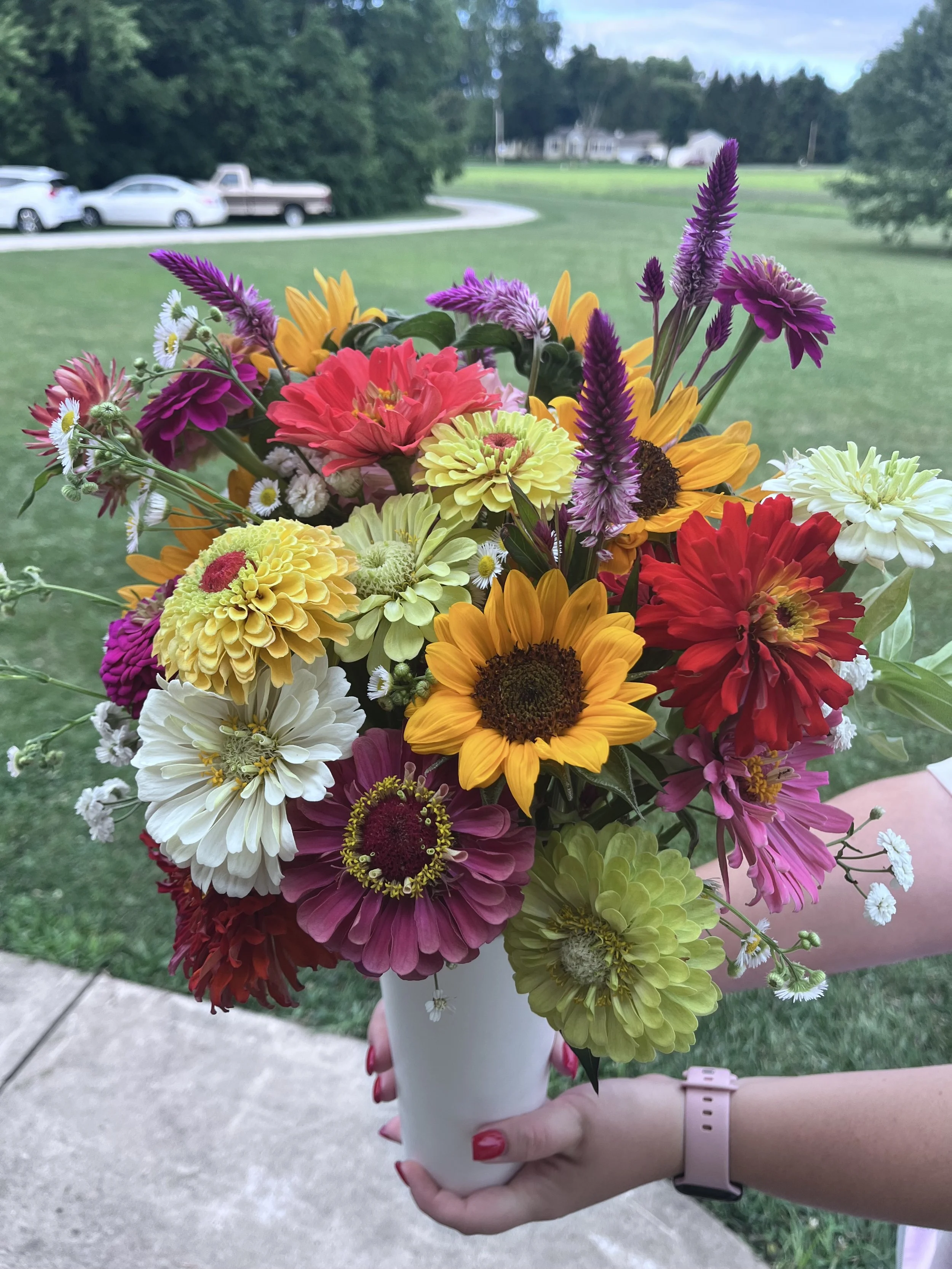 Professional photography sessions are not allowed during you-pick days/times. Please contact us if you would like to use the flowers as a setting.